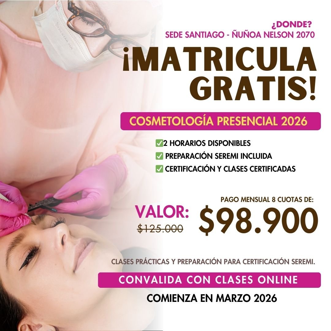 Aprende cosmetología profesional en 8 meses con aparatología, limpieza facial, tratamientos completos y preparación para examen SEREMI.